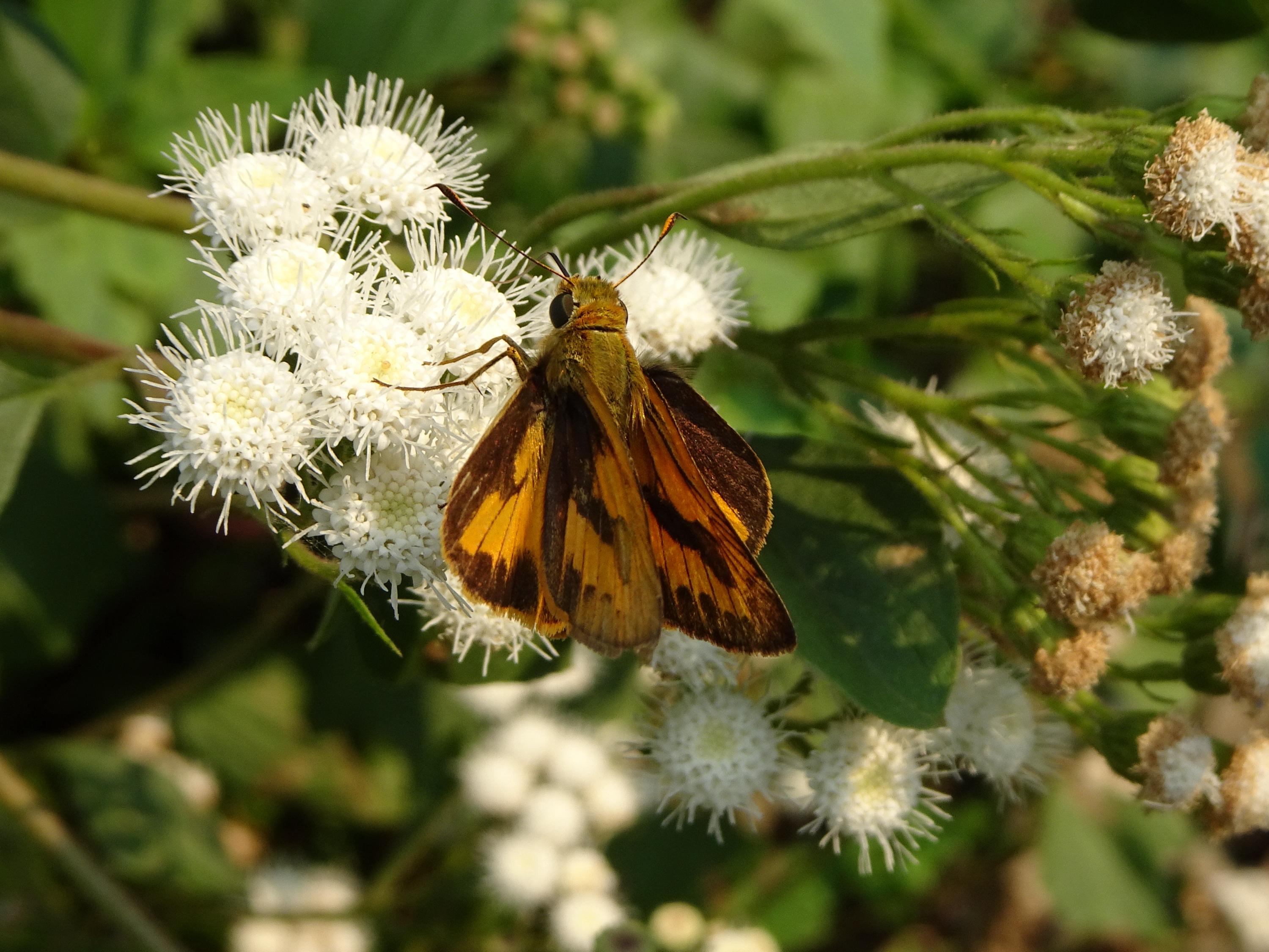 Hesperiids are commonly known as skippers and are members of true butterflies (Papilionoidea). They have hooked antennae and small wings compared to their bulky bodies. Some groups keep their wings closed while some prefer to keep them flat open. Hesperiids have a very fast flight what with some are called swifts and darts.
